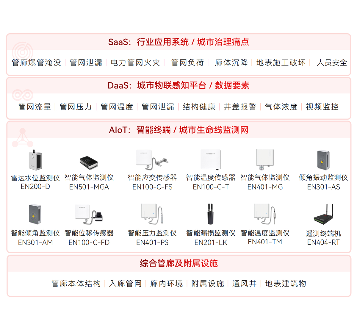 WITBEE?萬賓?是中國首批城市生命線智能監(jiān)測儀器和大數(shù)據(jù)服務(wù)提供商,提供智能監(jiān)測儀器、智能基站、云端平臺等智能物聯(lián)網(wǎng)技術(shù)與產(chǎn)品線,賦能城市排水、供水、燃?xì)狻⒐?、橋梁、建筑、隧道、綜合管廊、河湖等城市基礎(chǔ)設(shè)施生命線監(jiān)測感知網(wǎng)絡(luò)化建設(shè)和智能化管理,對接城市運(yùn)行管理服務(wù)平臺,支撐城市運(yùn)行“一網(wǎng)統(tǒng)管”,提升城市生命線運(yùn)行效率和安全,提高城市精細(xì)化治理能力。